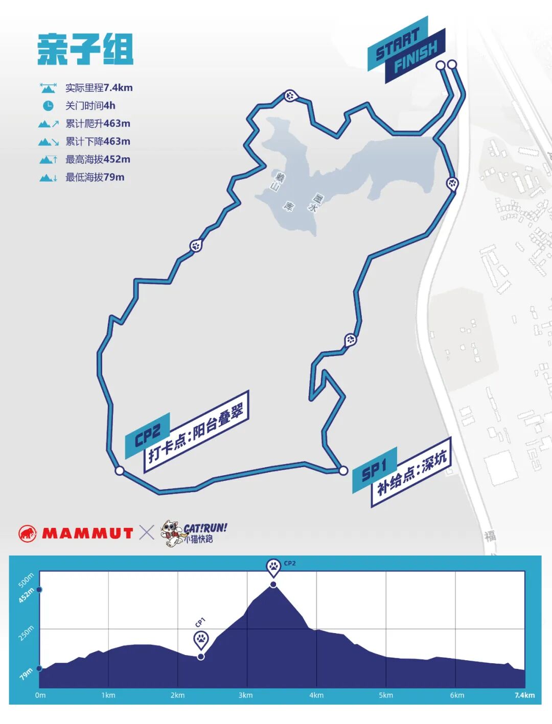 实际距离7.4 km,累计爬升463m+